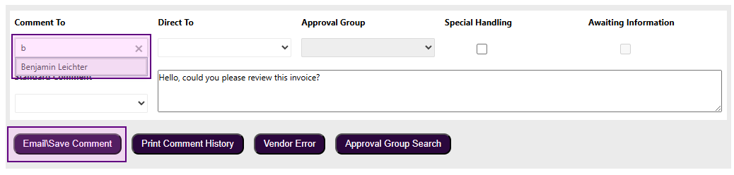 - Select the user to whom you are writing form the “Comment To” drop-down menu.