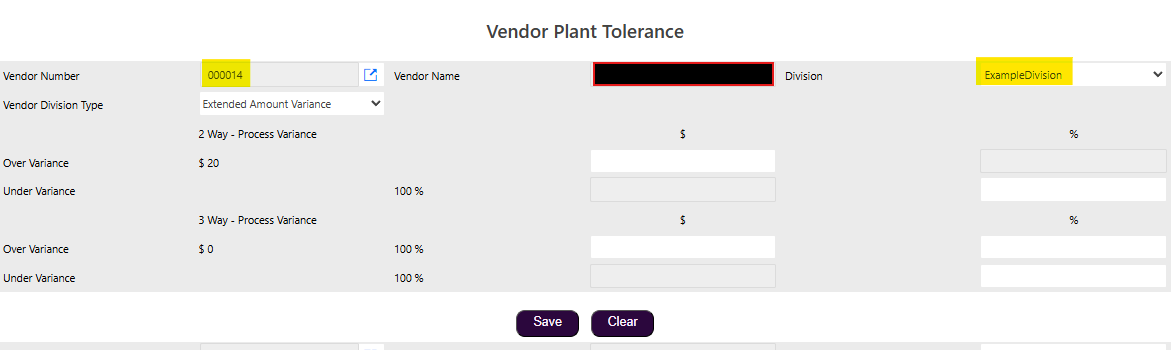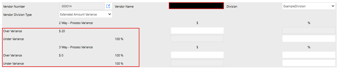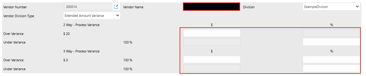 This article explains how the Vendor Division Tolerance section works and what the fields do
