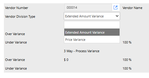 - Select the Vendor Division Type, which determines the type of variance rule to apply: