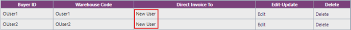 - Find any existing buyers that have the original user listed in the “Direct Invoice To” field: