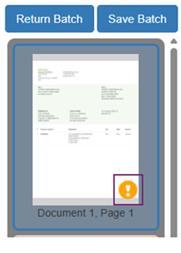 A yellow circular icon with an exclamation mark on the invoice thumbnail